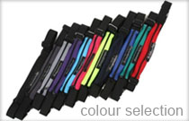 Runbags are made from tri-lobal, a synthetic fabric which stretches in one direction only, with durable elastic and a moulded plastic clasp.
